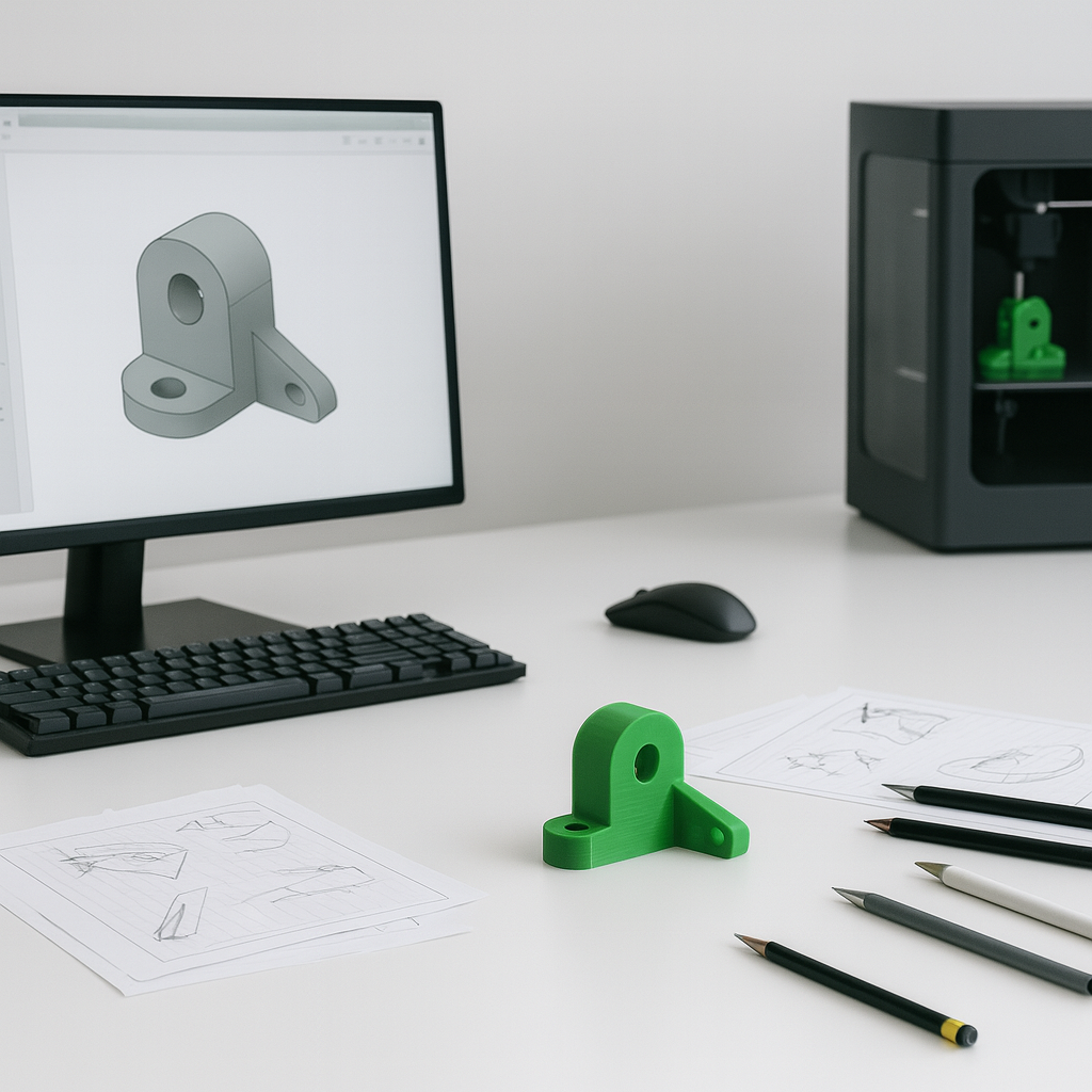Elk project begint met een digitaal ontwerp. Op basis van een idee, een schets of bestaande onderdelen maak ik een 3D-model dat precies past bij wat je nodig hebt. Daarna kan het snel gaan: van je eerste input naar een tastbaar object in je handen.